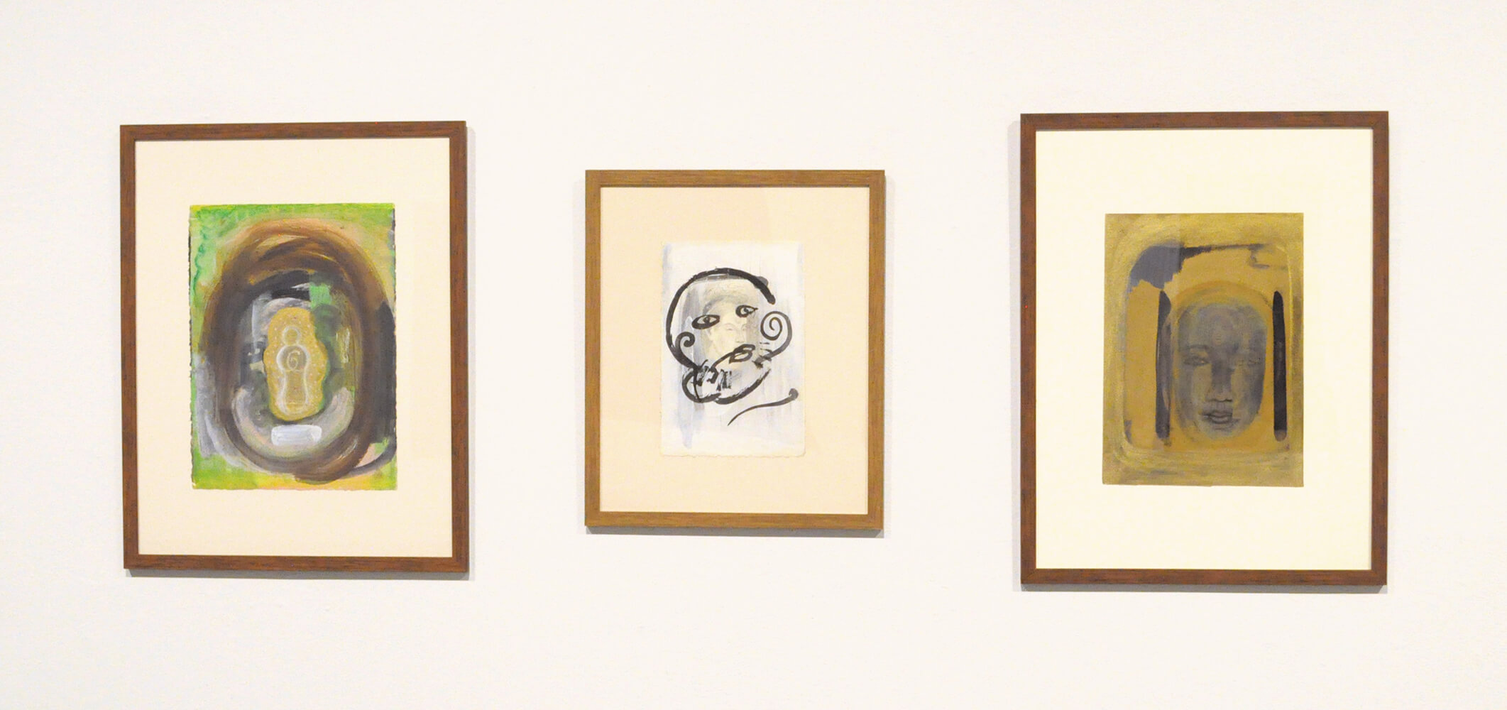 In 2023, the JACCC hosted a solo exhibition of Keisho Okayama’s paintings, drawings and objects. The featured works were created from the 1970s to 2017. Okayama’s paintings and drawings bridged the worlds of abstraction and figurative observation. With a highly personal color palette and sense of space, he emphasized the spiritual and subconscious. Also shown was a wall of drawings – later labeled “composite mediums” by Keisho’s widow, Lauren. These were old watercolors and drawings that Okayama over painted and re-purposed, creating idiosyncratic and mysterious images. It was the first time so many of these composite mediums had been shown at once. A glass case featured objects that he created for the Senshin Temple Kinnara Gagaku group: Bugaku masks, hirichikis (flute-like instruments) and their boxes. A video above the display case showed a performance of Kinnara Bugaku, for which Okayama created the masks.